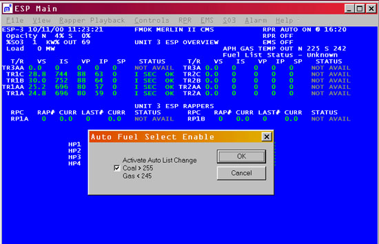 from that of Coal and the plant manually switched the "on-board" Merlin II® AHVC Parameter
