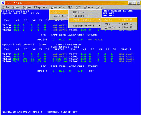 viewed "Oil Firing" knowing that the ESP system was accommodating the fuel switch. Changing back to Coal